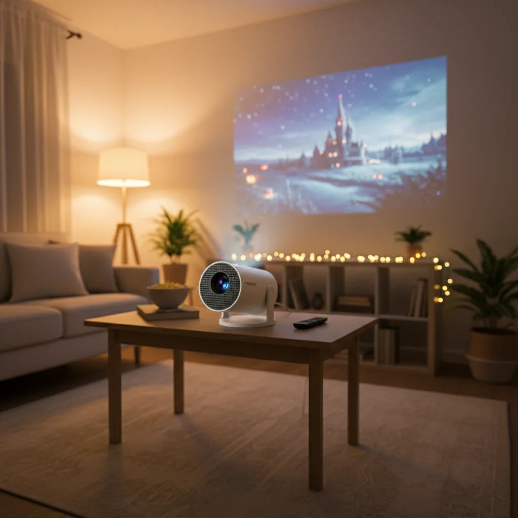 Transformez n'importe quelle pièce en votre salle de cinéma privée en quelques secondes. C'est simple, rapide, et incroyablement immersif.
